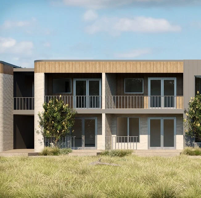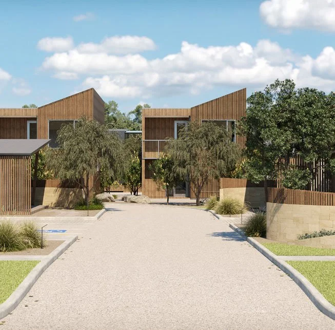 The Peterborough Project ‘Moness’ has been designed with community in mind. The project aims to provide a comfortable scale of amenity for the residents of Peterborough. It is hoped both visitors and residents will embrace a project we believe will only enhance the coastal community charm. An emphasis on natural timber, limestone and corrugated cladding help to ensure the development sits well within the landscape. The planning of the site has been thoroughly considered to guide visitors though the development, and encourage a community feel. Landscaping features such as curved limestone walls, low level boardwalks and an abundance of native planting soften the overall development, provide wayfinding, and restore the ecology of the site.